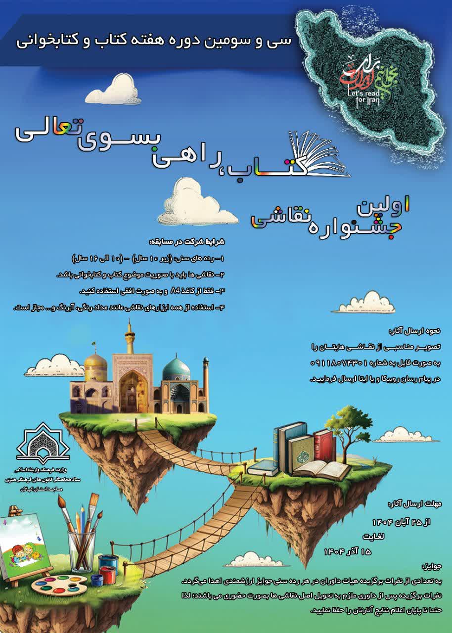 ستاد هماهنگی کانون‌های فرهنگی هنری مساجد گیلان اقدام به برگزاری اولین جشنواره نقاشی"کتاب راهی به سوی تعالی" پرداخت. این جشنواره ویژه گروه سنی "زیر 10 سال" و" 10 تا 16 سال" با محوریت کتاب است که تا 15 آذر ما مهلت دارد.
